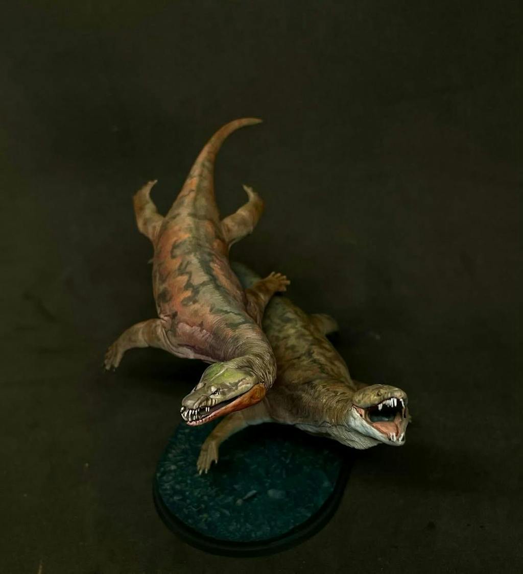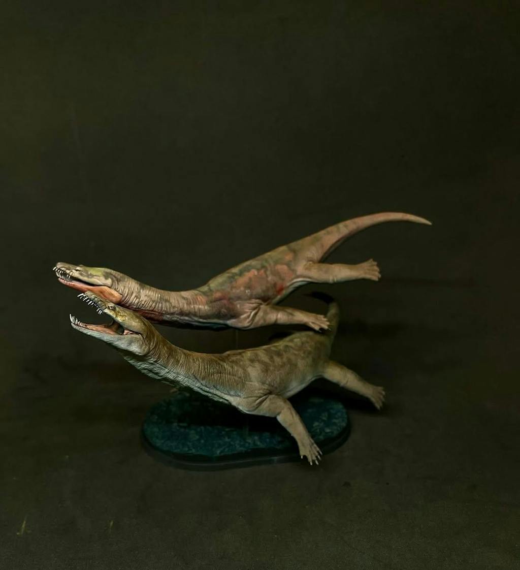 While I found it a bit tricky to visualise the scale of the model and therefore decide on the scale I wanted to get, the order process was very smooth. Likewise, it was both easy and straight-forward to work together with the artist to both communicate my ideas and track them as he worked on my models. His skill and natural gift for painting these models was absolutely key in them turning out the way they did, with them looking extremely realistic to the minutest detail. Starting with a colour scheme concept of marine iguanas, the final figurines are extremely life-like. So, not only are nothosaur models hard to find, the one I have now is uniquely tailored to how I envision them having been - which is completely awesome! I'll definitely be back for another model...!